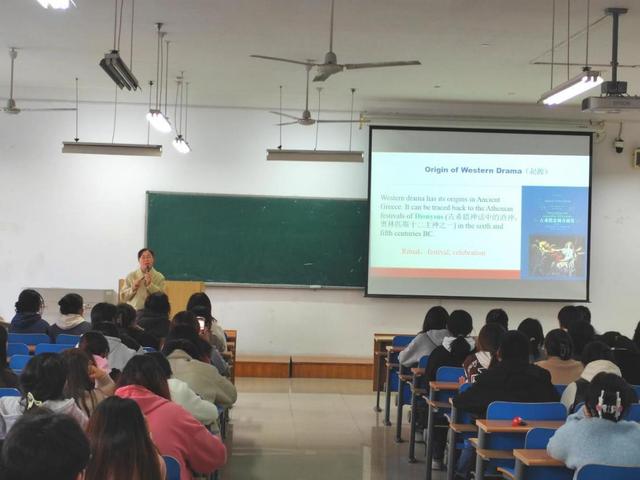 李老师在讲座中引领同学们走进了英语戏剧世界,认识了英语戏剧的起源、主要元素、主要类型以及大批优秀的戏剧大师及其代表性作品。她带领同学们欣赏了一部部经典戏剧选段,生动细致地讲解了英语戏剧表演的基本技巧,让同学们感受到了戏剧作为表演艺术的巨大魅力,增进了他们对戏剧知识和戏剧表演的认识和浓厚兴趣。她还与同学们亲切互动,鼓励同学们积极参与戏剧创作和表演,以提高自己的英语表达能力。