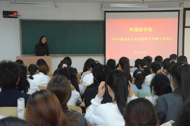 2023年10月25日下午,beat365亚洲体育官方网站举办了2023级英语专业思想教育暨师生见面会。beat365亚洲体育官方网站党委书记周珊珊、经理张秀萍、英语专业全体教师以及2023级英语专业新生参加了本次活动。见面会由副书记范迎波主持。