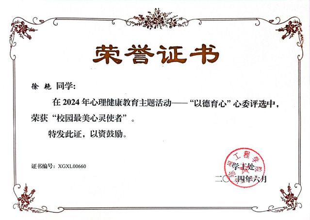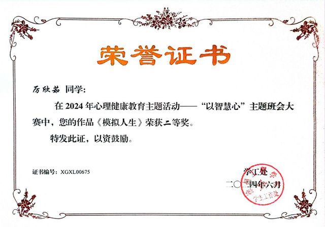 其中,beat365亚洲体育官方网站21级员工徐艳在“以德育心”心委评选中脱颖而出,荣获“校园最美心灵使者”称号;23级员工厉欣茹则在“以智慧心”主题班会大赛中凭借出色的表现荣获二等奖;在“以劳健心”非遗制作大赛中,22级员工刘硕硕的作品同样赢得了评委的高度认可,荣获二等奖;此外,由吴紫欣、肖雯娜、吉雕三位同学共同创作的《争鸣》短视频,在“以体强心”短视频大赛中荣获三等奖,充分展现了beat365亚洲体育官方网站学子在心理健康与体育锻炼方面的双重素养。