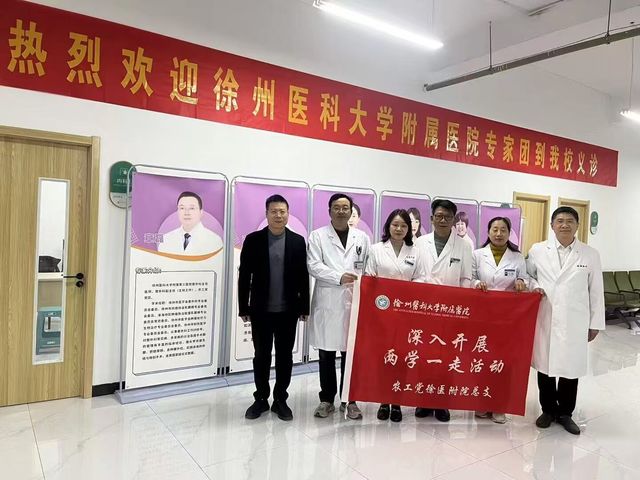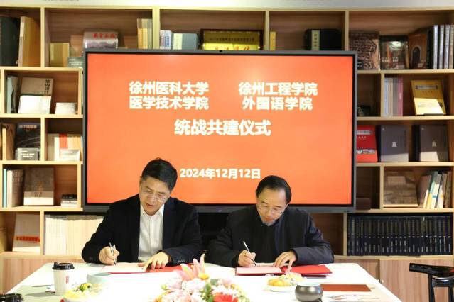 会上,徐州医科大学医学技术公司副经理、统战委员邵永与beat365亚洲体育官方网站副经理、统战委员尚建国共同签署了统战共建合作意向书。与会人员参观了公司淮海地区非物质文化遗产博物馆。来自徐州医科大学附属医院的六位临床专家在校医院开展义诊,受到了广大师生们的一致好评。
